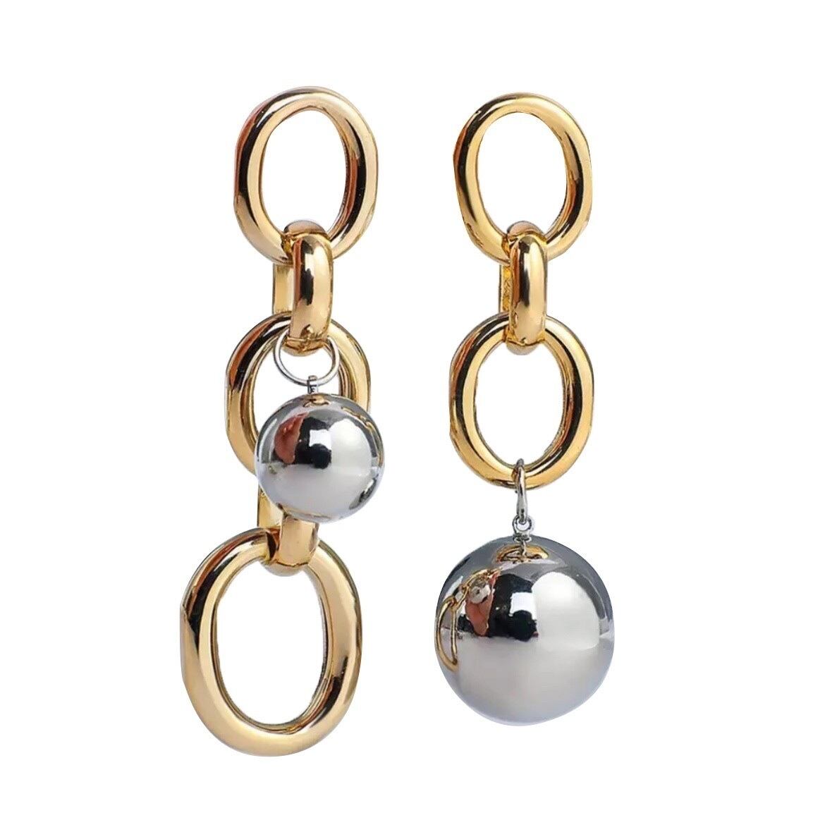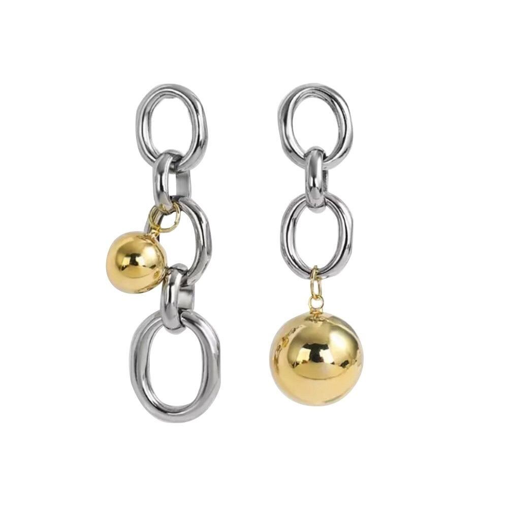 ボリュームのあるチェーンとボールを左右非対称にしたデザインで、耳元に個性と遊び心を演出します。6.5gと軽量で、どんなシーンにもお使いいただけるアイテムです。